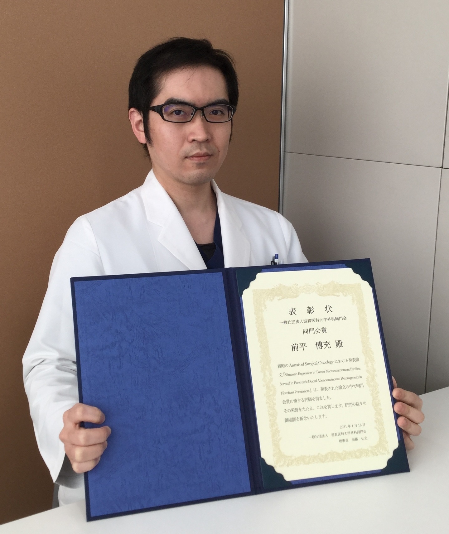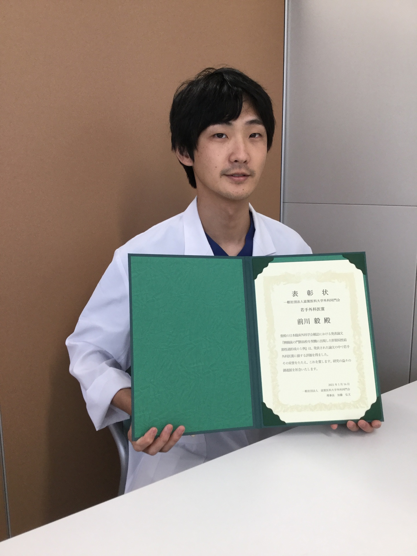 2021年度 外科同門会各賞の表彰は滋賀医科大学において各教授より授与されました。