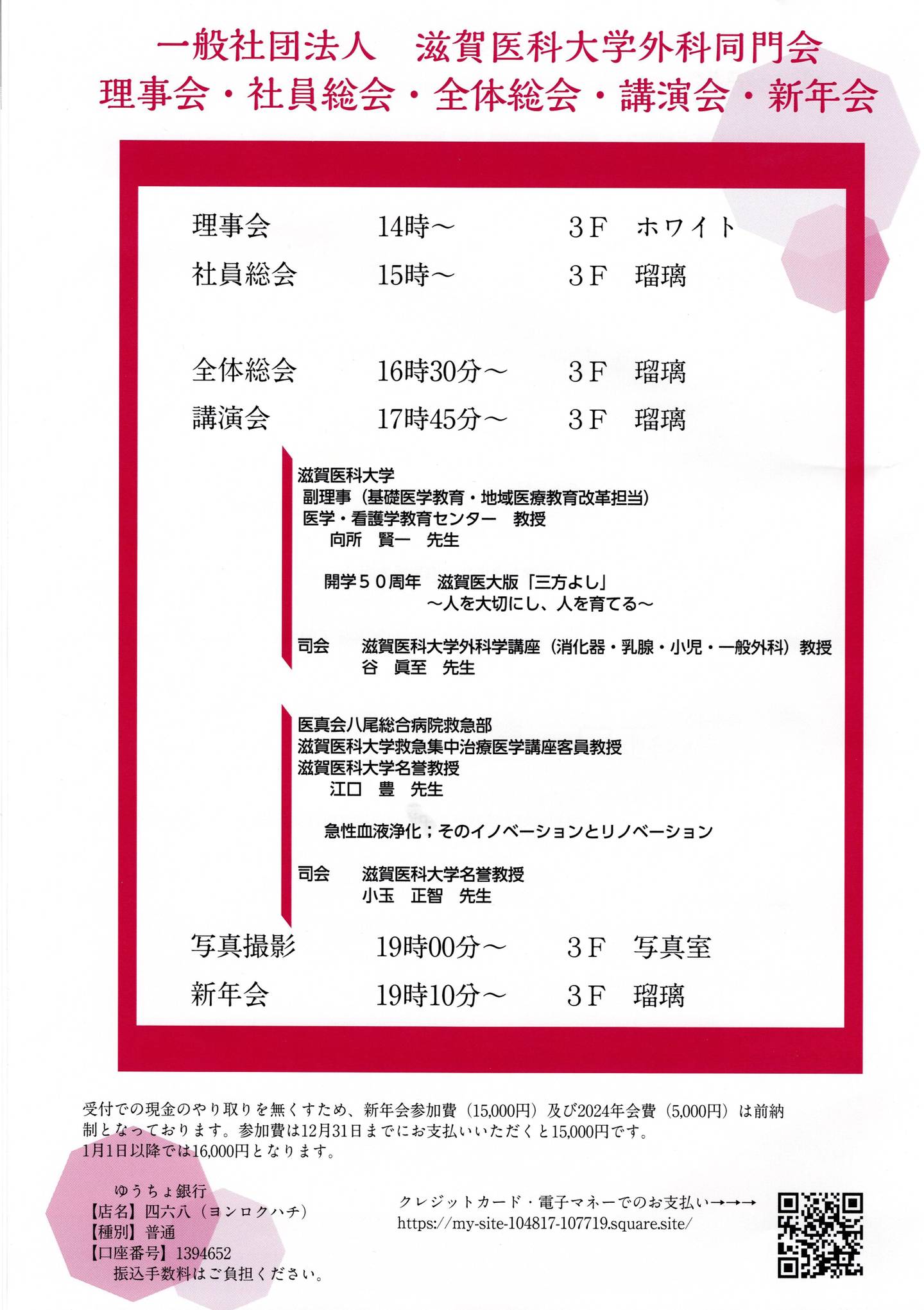 2020年『外科同門会 全体総会・講演会・新年会』 開催のお知らせ